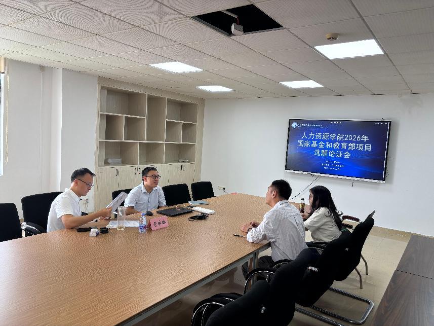 为提升课题申报质量,助力教师科研能力提升,人力资源学院于2025年9月25日至28日期间,在广州校区勤学楼901举办两场2026年度国家课题选题论证会。会议分别邀请了广东工业大学管理学院晋琳琳教授、苏涛副教授担任论证专家,学院拟申报课题的教师参与研讨,通过“汇报+点评”的形式,为学院教师的课题申报工作把脉定向。论证会由学院魏伟副院长主持。