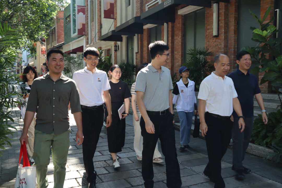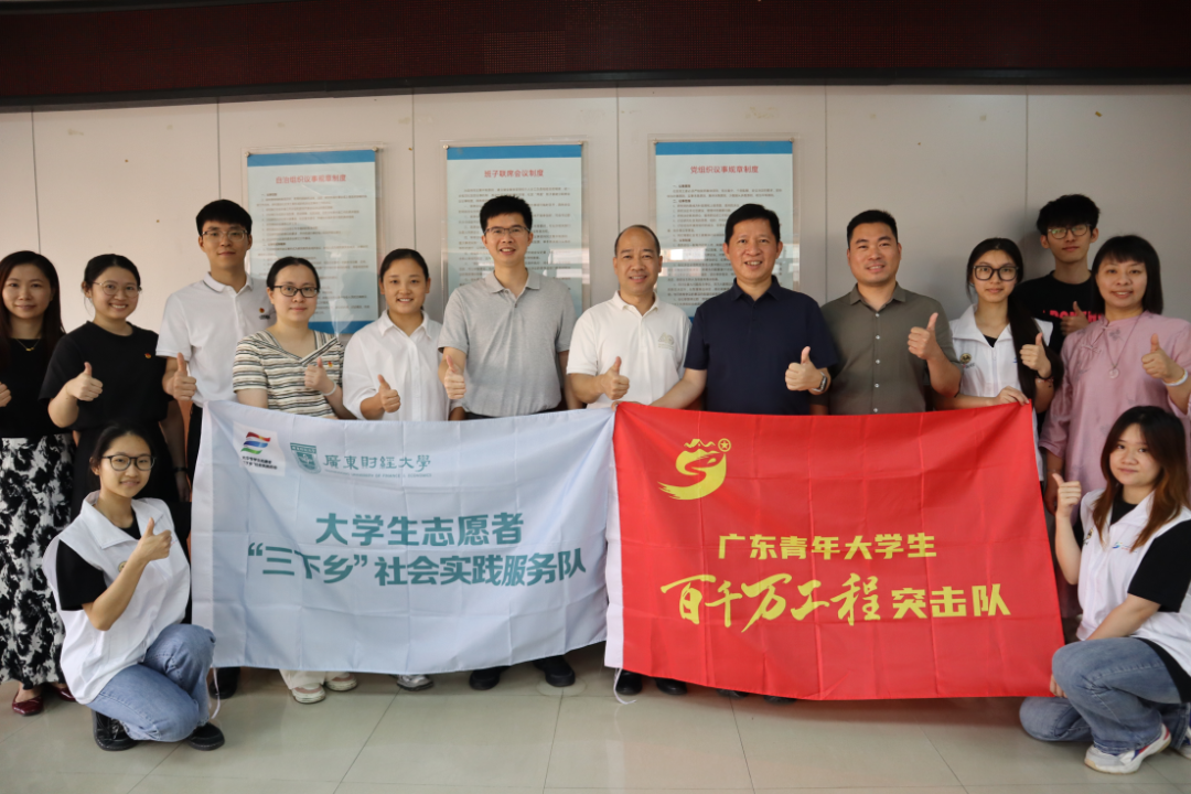 盛夏炽热,阳光如瀑。我院多支暑期“三下乡”社会实践队伍如火如荼地奔赴乡镇前一线,把“百千万工程”的火热现场当作青春课堂,为中国式现代化写下青年注脚。近日,学院党委书记黄东阳、党委副书记阮方明、团委书记巫健坤一行前往东莞市莞城街道,走访慰问正在进行暑期社会实践的莞蕴新辉实践团成员并指导实践活动。莞城街道团工委书记黎润锋等热情迎接。