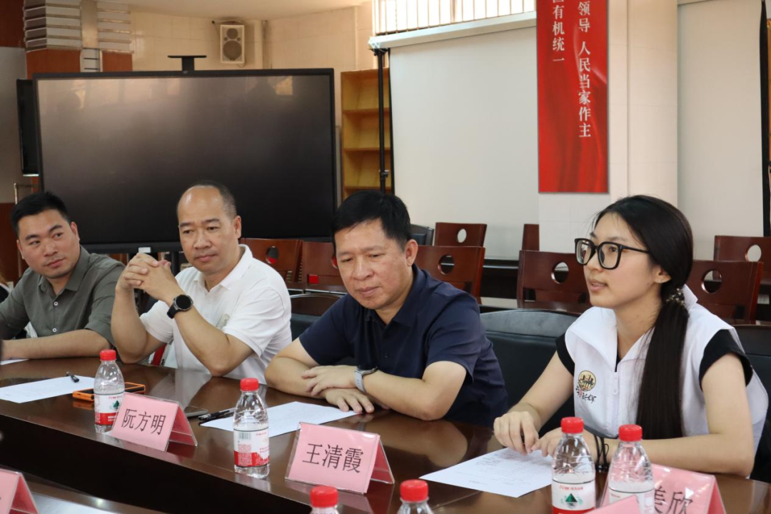 座谈会上,莞蕴新辉实践团队长王清霞首先感谢学院领导及实践地的大力支持,并分享了团队在莞城街道开展社区走访调研、摄影宣传、新媒体运营、学习非遗技艺及开办“社区嵌入式”非遗课堂的经历,交流了实践中的经验、亮点与不足。