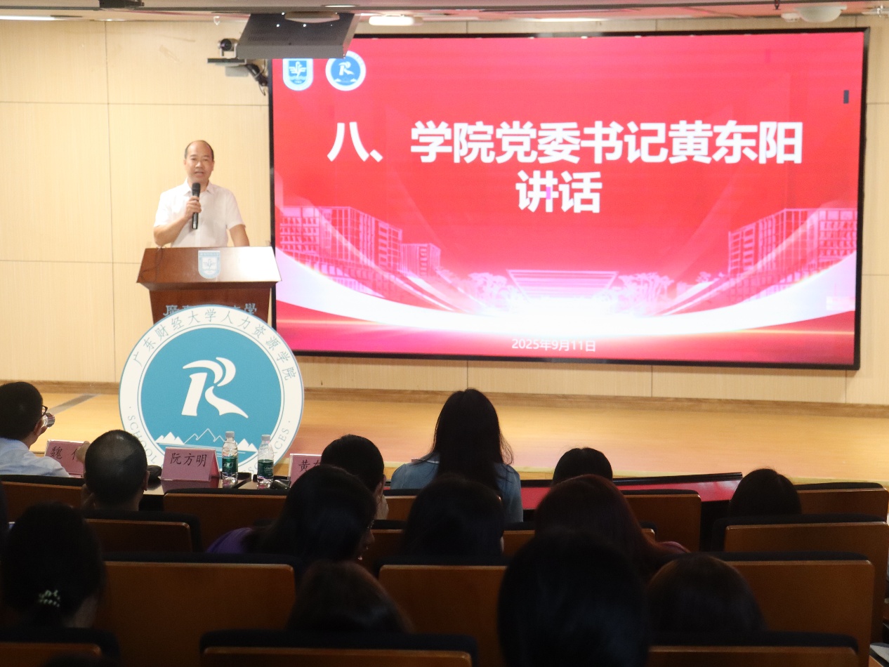 金秋送爽,丹桂飘香。9月11日上午,人力资源学院在佛山校区同心楼101教室隆重举行2025年师生见面会,迎接129名本科新生的到来。学院党委书记黄东阳、党委副书记阮方明、副院长宋一晓、副院长魏伟等学院领导出席会议,各系主任、全体教职工及全体新生参加,会议由阮方明主持。