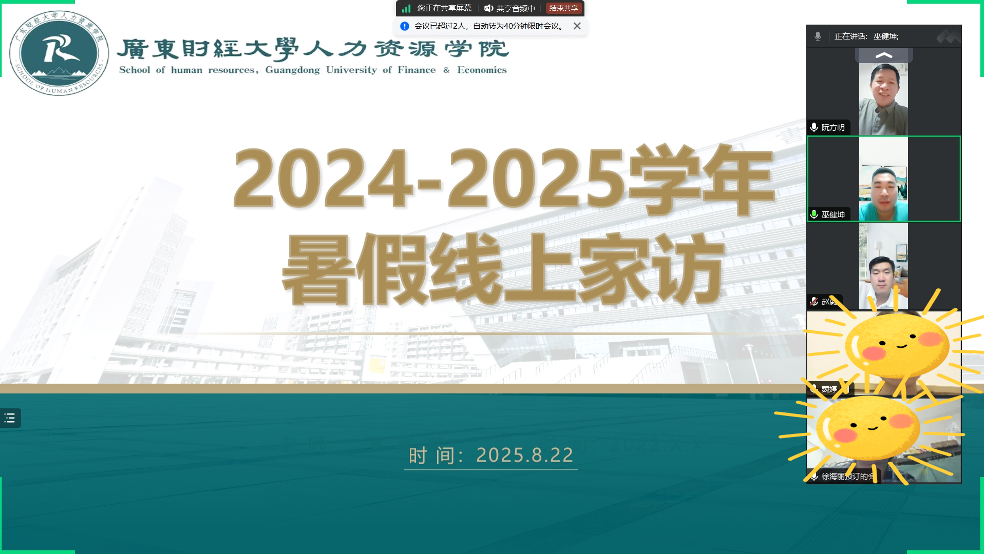 为强化家校协同共育机制,人力资源学院于2024年暑期开展困难学生和新生家访活动。学院党委书记黄东阳带队,党委副书记阮方明及辅导员巫健坤、徐海丽、赵威组成家访小组,通过“线上沟通+线下走访”双线联动形式,为学生家庭送去温暖与支持。