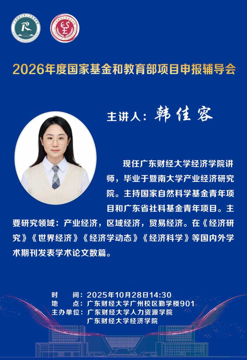 讲座通知:2026年度国家基金和教育部项目申报辅导会(韩佳容)