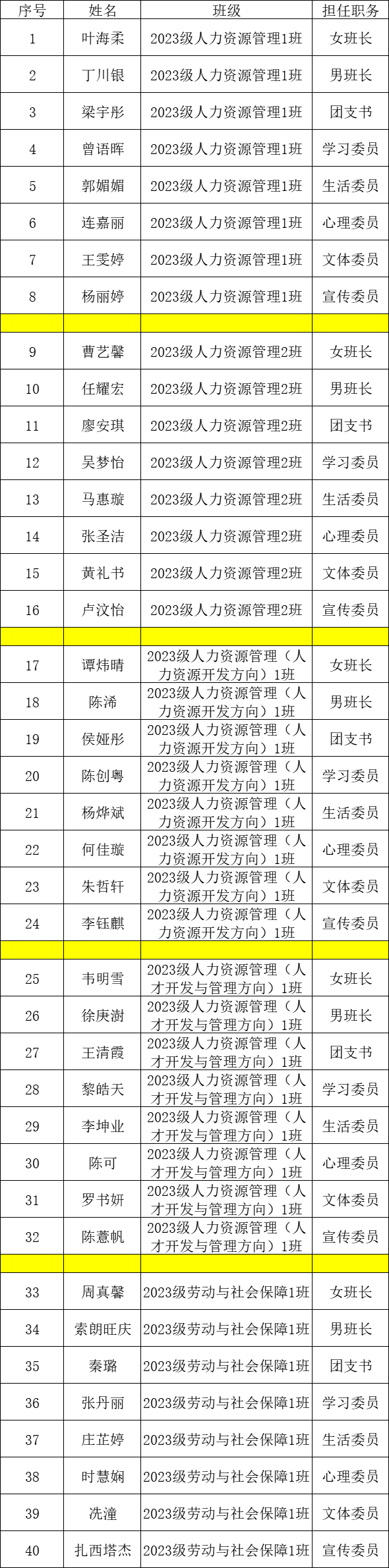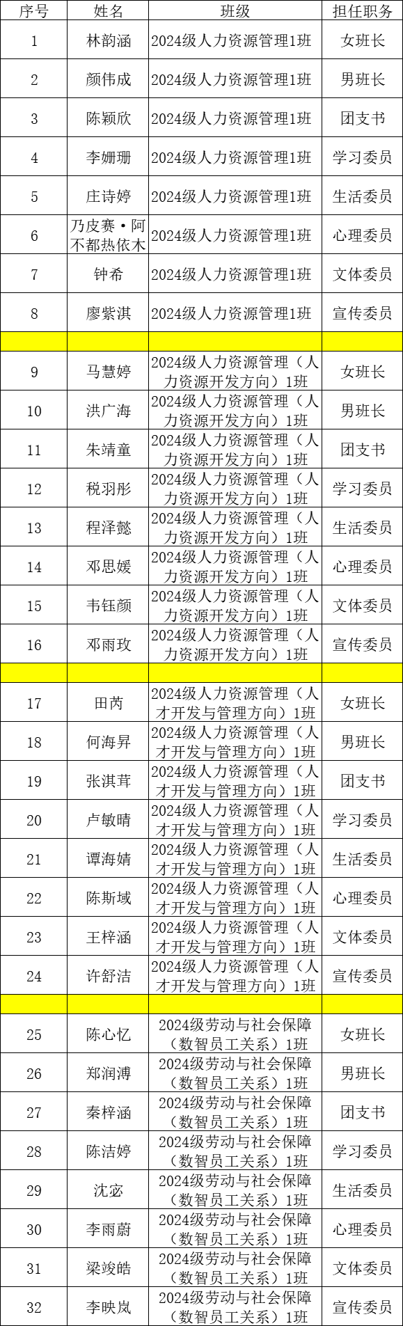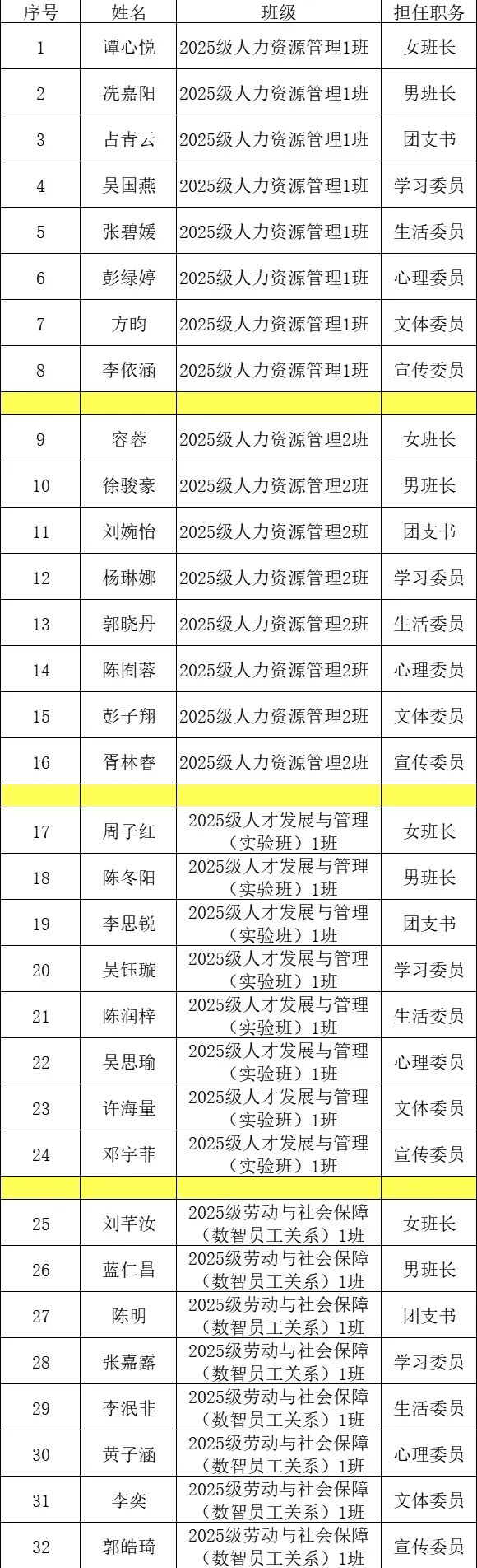 秉持公平与公正的原则,经过个人自荐、本班同学投票以及学院小组审核,拟定人力资源学院佛山校区2025—2026学年班级学生骨干人选。现将具体名单公示如下:
