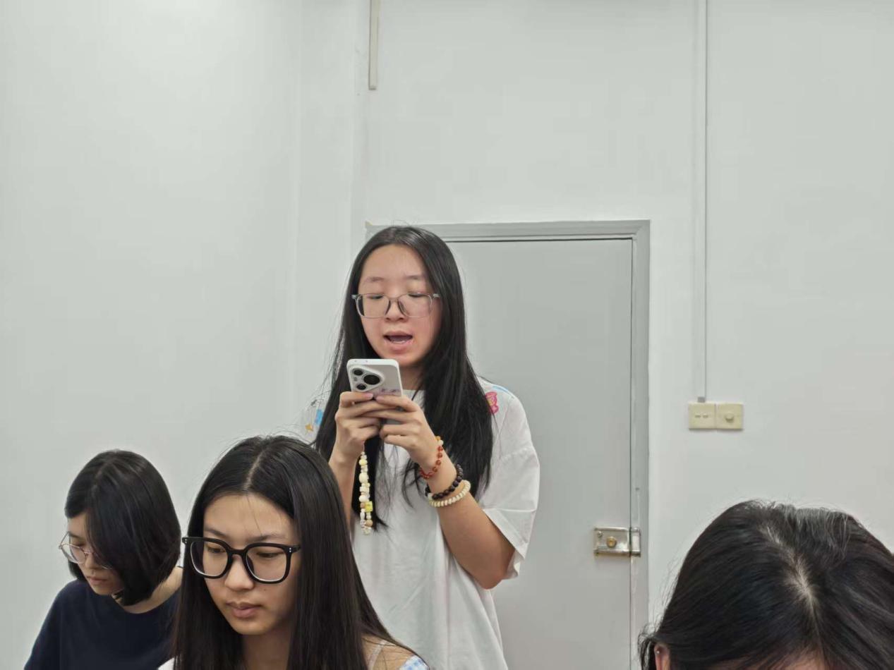 最后,进入主题研讨环节,参会成员围绕两个重点问题展开深入探讨:一是如何在"勇担强国建设、民族复兴大任"的号召下,通过具体行动将个人成长与国家发展紧密联系;二是新时代大学生如何将"爱国""求知""奋斗"三者结合,在专业学习中锚定国家发展需求。研讨中,同学们踊跃发言。