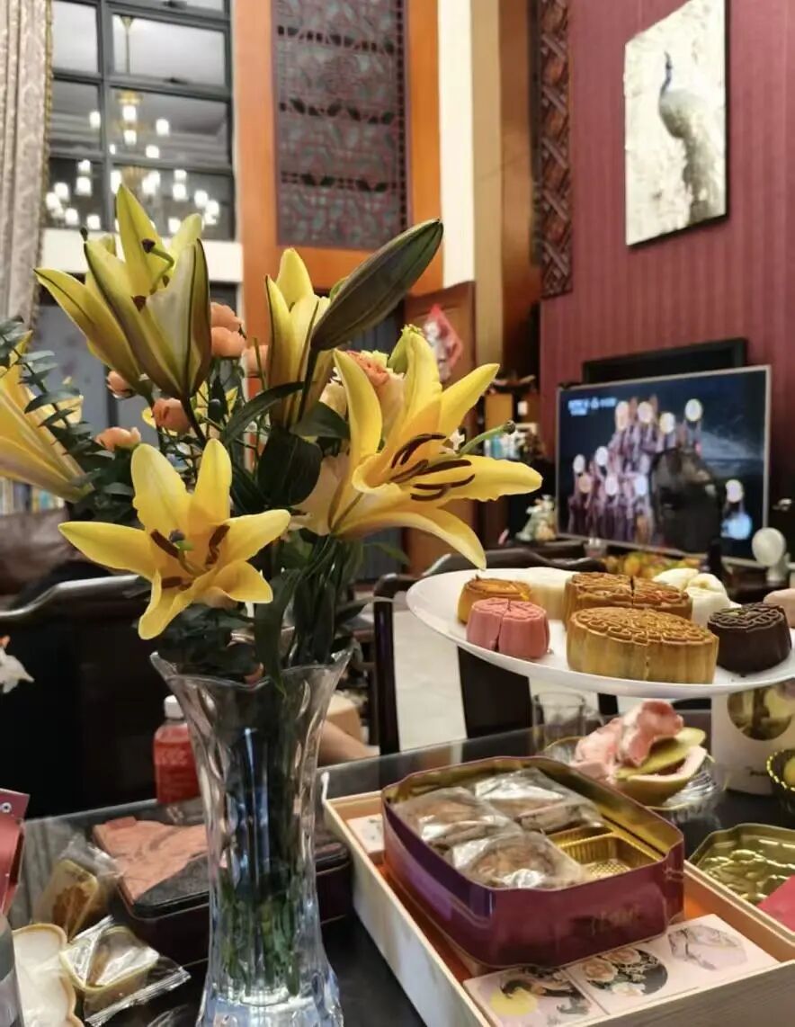 中秋时节,黄百合静放花瓶,月饼香气氤氲。那一刻,家的温暖与国的荣耀在同一空间交织,凝结成最动人的节日记忆。