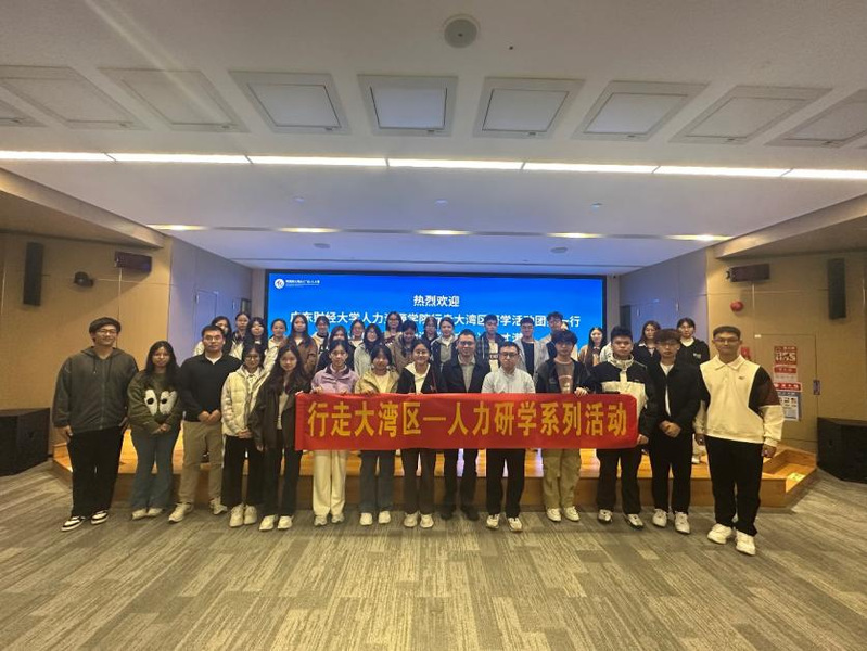 为深入学习贯彻党的二十届四中全会精神,引导学生“知湾区、懂湾区”,提升学科专业认知与社会实践能力,11月18日下午,人力资源学院开启首期“行走大湾区”研学系列活动。学院党委书记黄东阳,副院长宋一晓、魏伟及相关老师带领5个班级分别走进广东省人才服务局、广州市海珠区劳动人事争议仲裁院,广州弘亚数控机械集团股份有限公司,广州鲁邦通物联网科技股份有限公司,广东三新集团等单位参加研学。