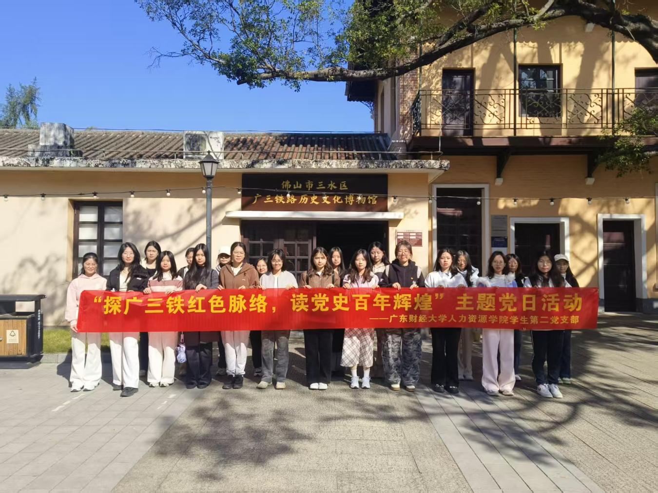 为深化党史学习教育、引导青年党员从红色资源中汲取奋进力量,11月29日上午,人力资源学院学生第二党支部组织全体学生党员和入党积极分子前往佛山市三水区广三铁路历史文化博物馆,开展“参观+实践+复盘”的主题党日活动。