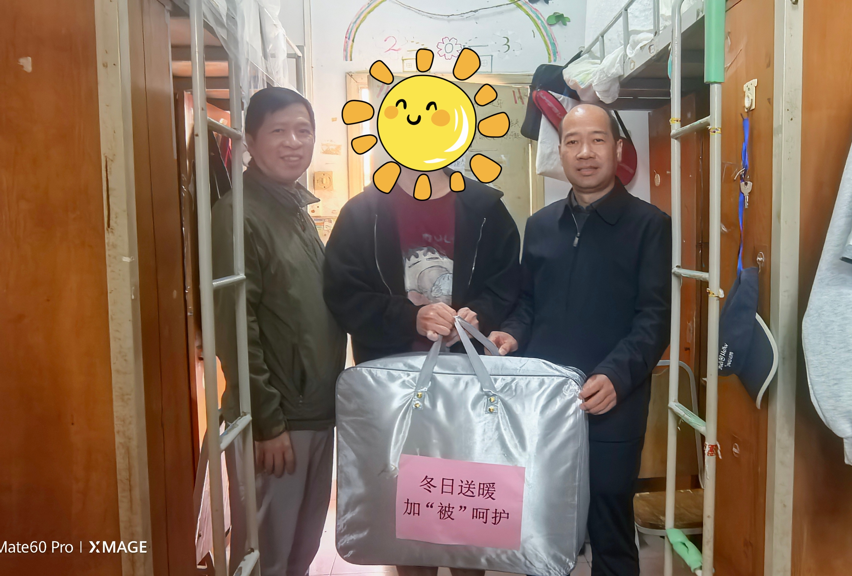 黄东阳一行深入学生宿舍,给学生送上棉被并与部分家庭困难学生展开亲切交流。他们仔细询问同学们近期的学习和生活情况,认真倾听大家面临的困难与需求。面对同学们,领导和老师们给予了温暖的鼓励,激励大家要坚定信念,勇敢克服眼前的短暂困难,以积极的心态投入到学业和丰富的校园生活中。同时,还特别叮嘱同学们要认真复习准备期末考试,注意防寒保暖,好好保重身体。