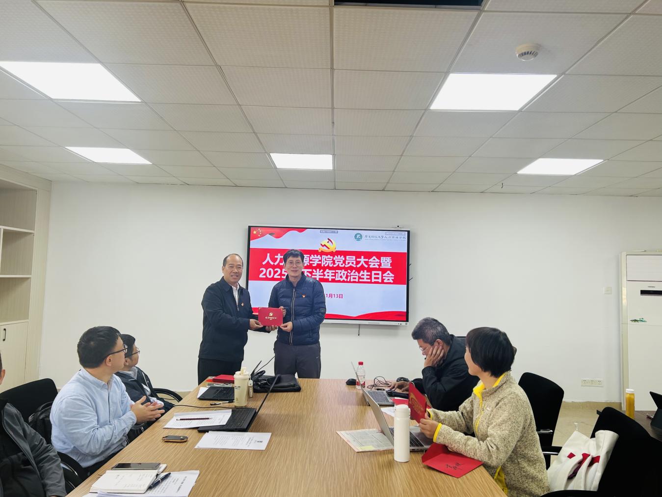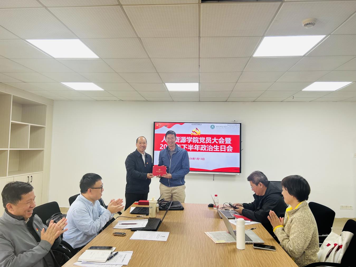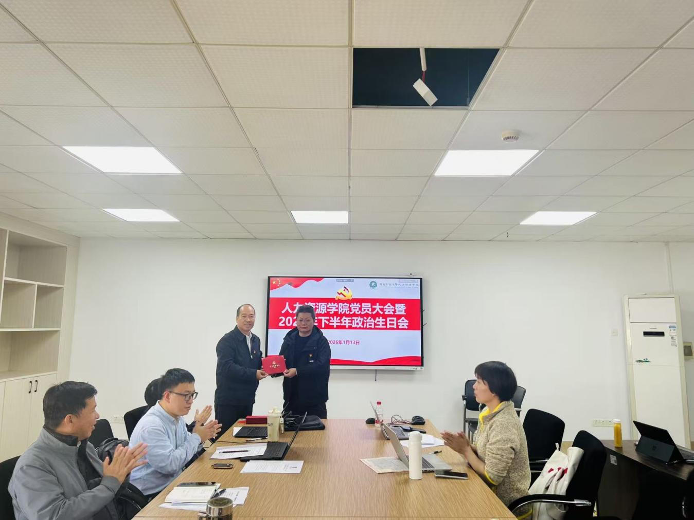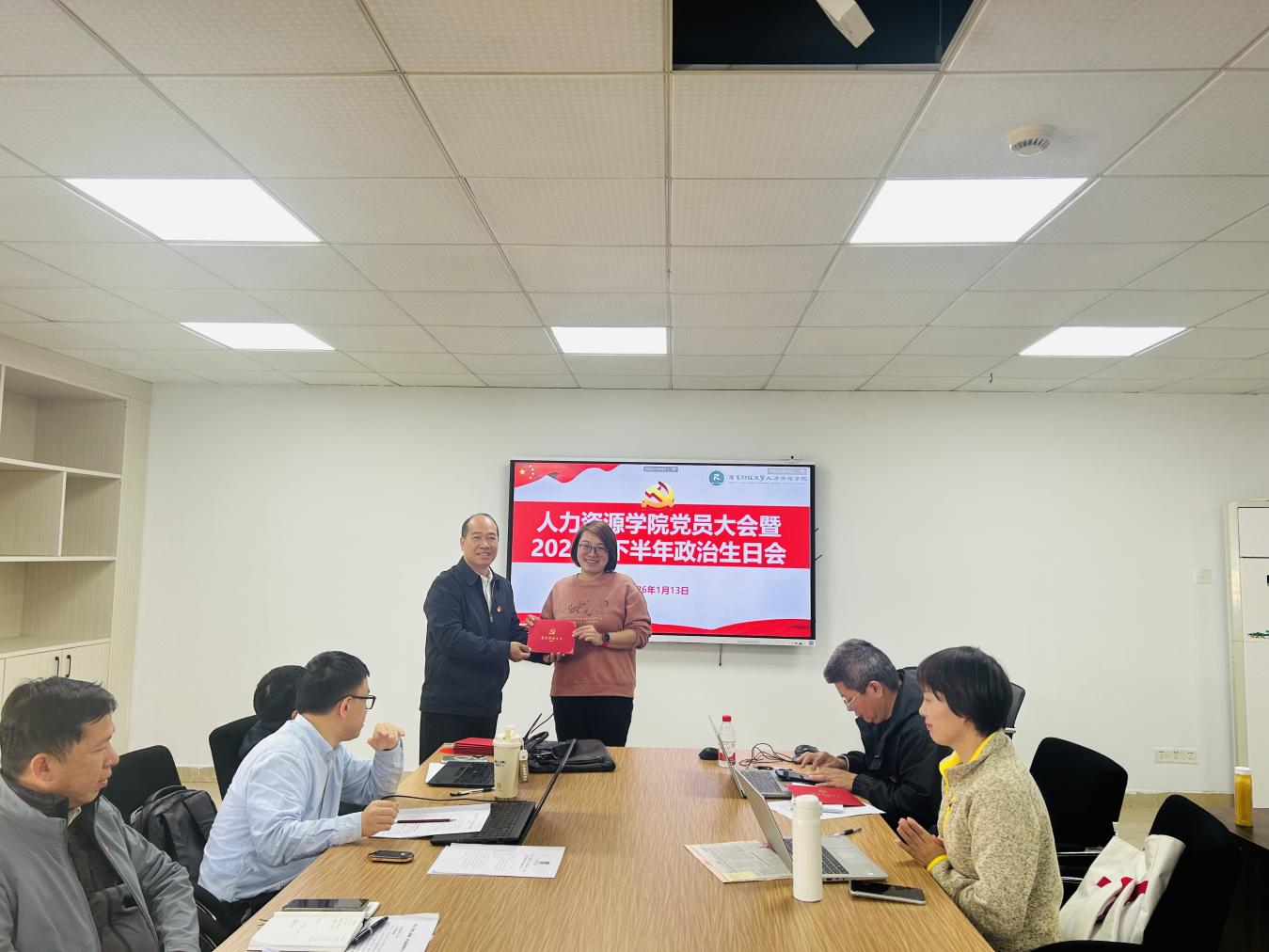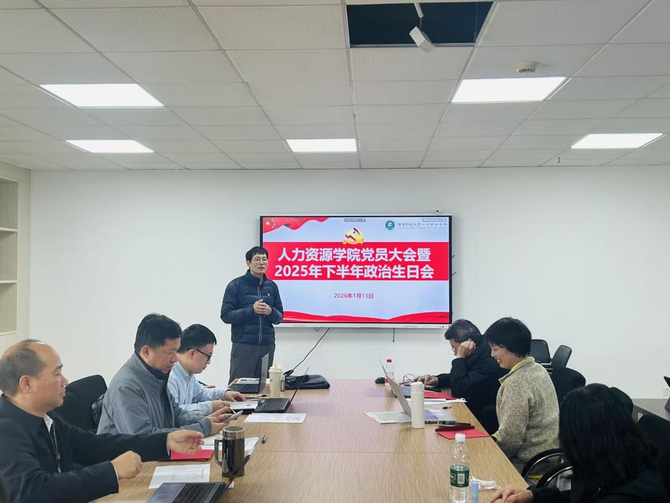 为进一步淬炼党员党性修养,凝聚育人初心与使命担当,1月13日,人力资源学院党员大会暨2025年下半年政治生日会顺利举办。学院党委班子成员出席活动,与全院20余名教职工党员齐聚一堂共忆初心、共话担当,活动由学院党委书记黄东阳主持。