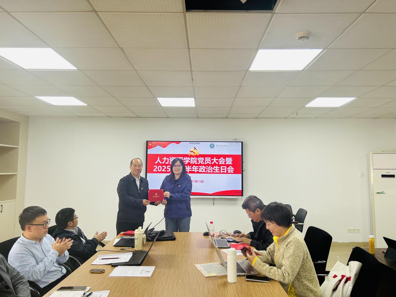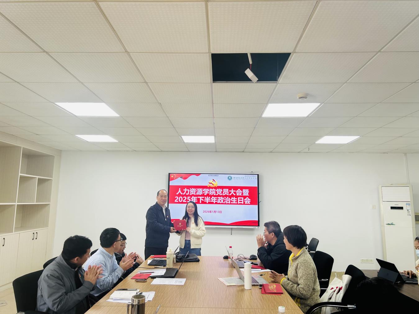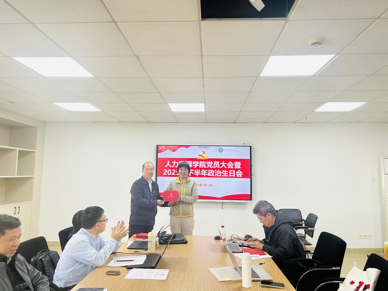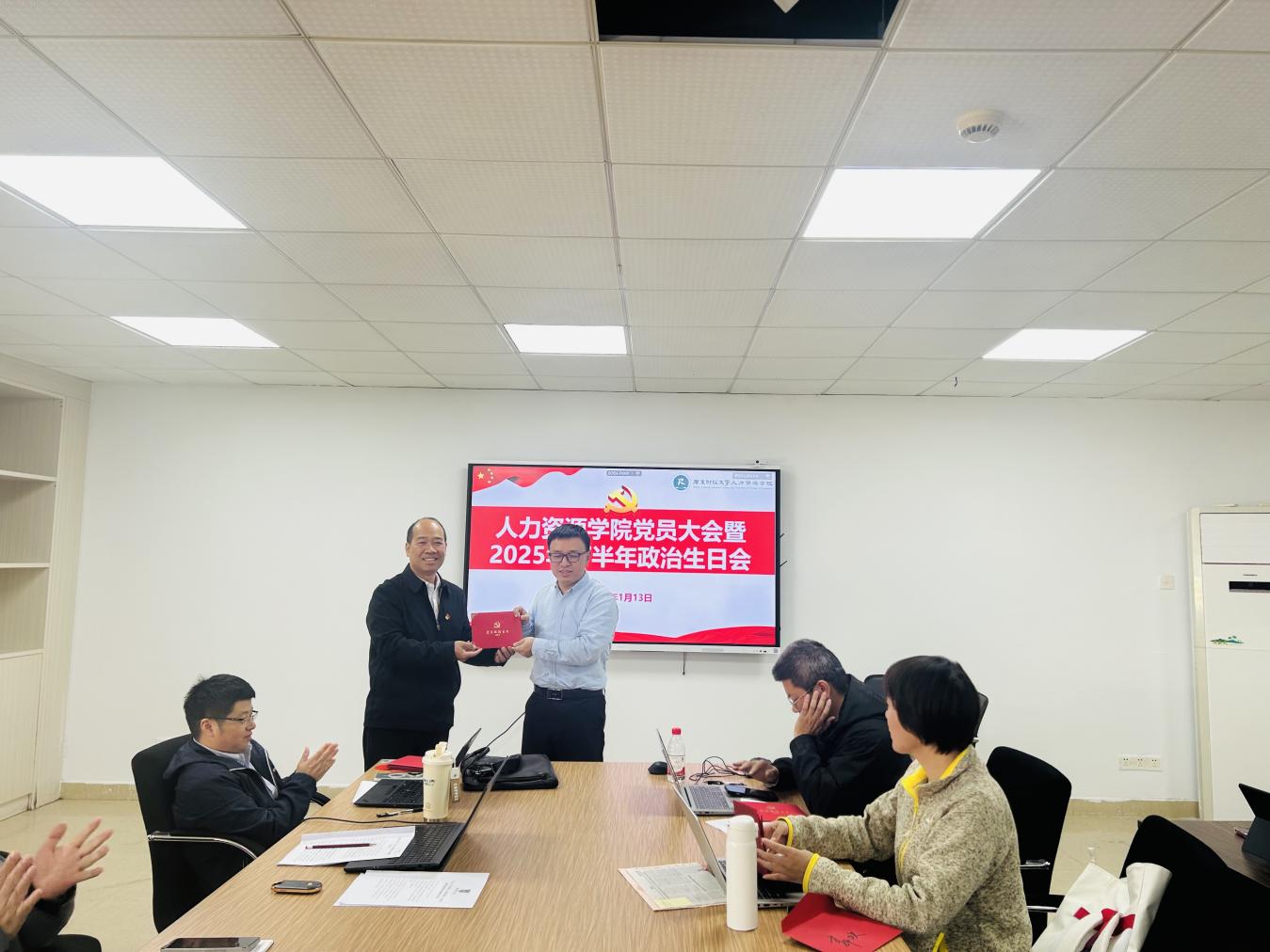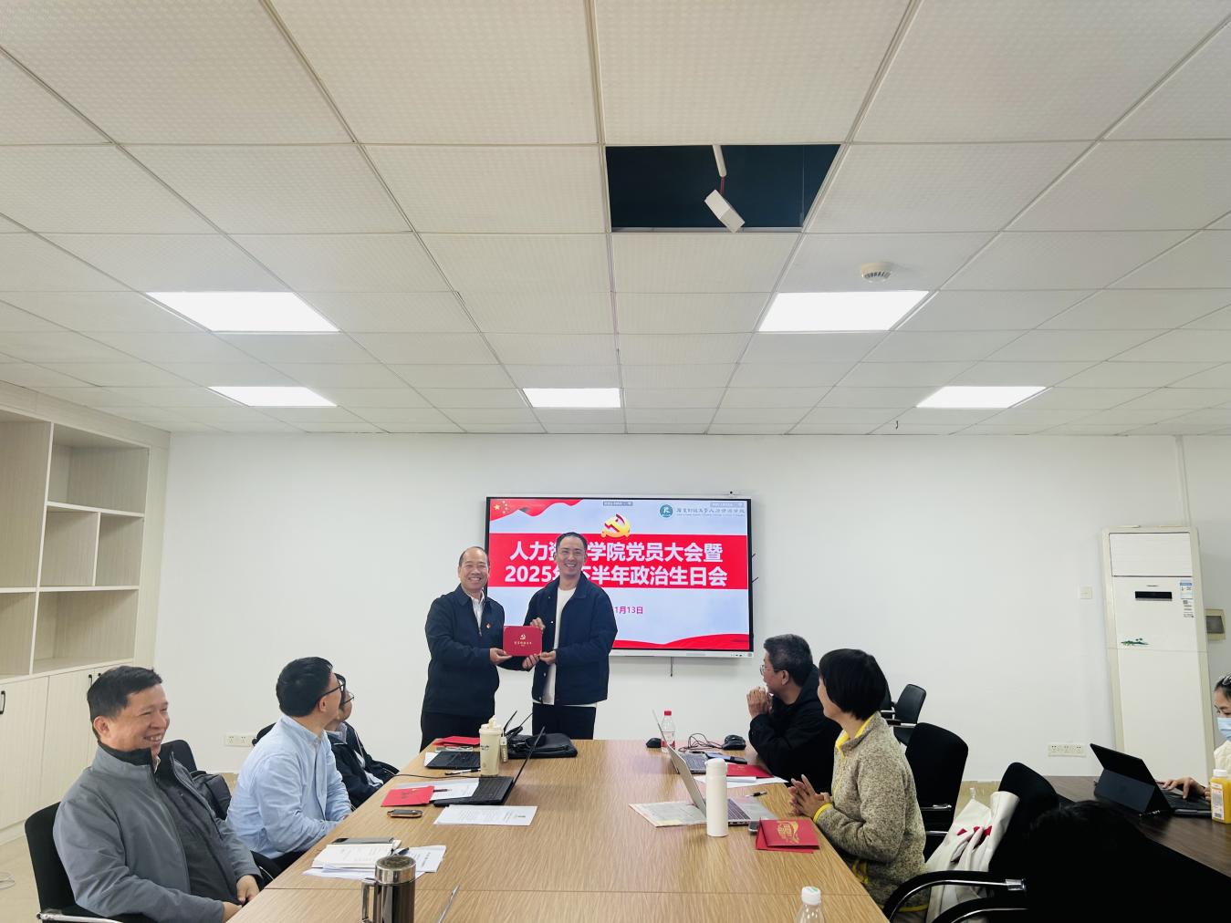 为进一步淬炼党员党性修养,凝聚育人初心与使命担当,1月13日,人力资源学院党员大会暨2025年下半年政治生日会顺利举办。学院党委班子成员出席活动,与全院20余名教职工党员齐聚一堂共忆初心、共话担当,活动由学院党委书记黄东阳主持。