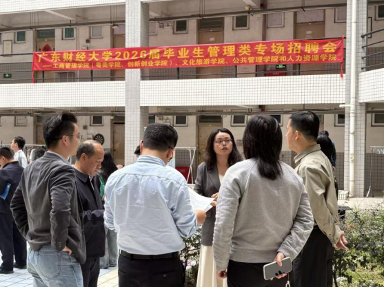 为搭建校企精准对接桥梁,助力2026届毕业生实现更充分、更高质量就业,12月23日下午,广东财经大学2026届毕业生管理类专场招聘会在广州校区28栋学生社区一楼大厅成功举办。本次招聘会由工商管理学院(粤商学院、创新创业学院)、公共管理学院、文化旅游学院、人力资源学院联合主办。