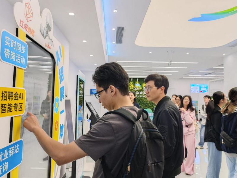 在实地参观环节,南沙国际人才港服务官龙憬裕对人力资源学院“行走大湾区”研学活动的老师和同学表示热烈欢迎。随后,在龙憬裕的带领和讲解下,师生先后实地参观了南沙国际人才特区展厅、南沙人才一站式政务服务窗口、大湾区(广东)人才驿站、图南AI招聘大厅等功能区域,详细地了解南沙建设国际人才特区过程中,在人才工作、人才政策、人才大数据和典型人才代表的具体情况,也为青年搭建的广阔发展舞台,同学们对南沙“聚天下英才而用之”、全力赋能青年成长的诚意与实力留下深刻印象。