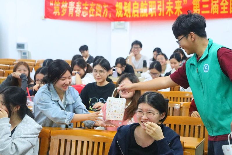 比赛间隙设置的有奖问答环节气氛热烈,同学们积极互动,在轻松活跃的氛围中深化了对职业规划的理解。