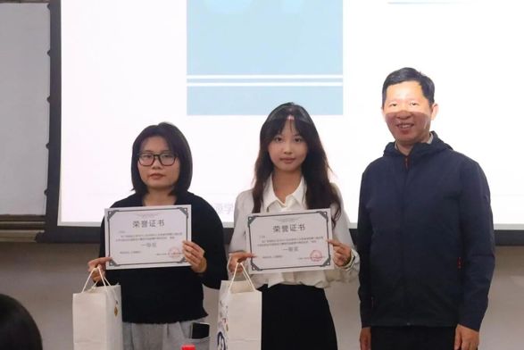 人力资源学院党委副书记阮方明为一等奖获奖者颁奖