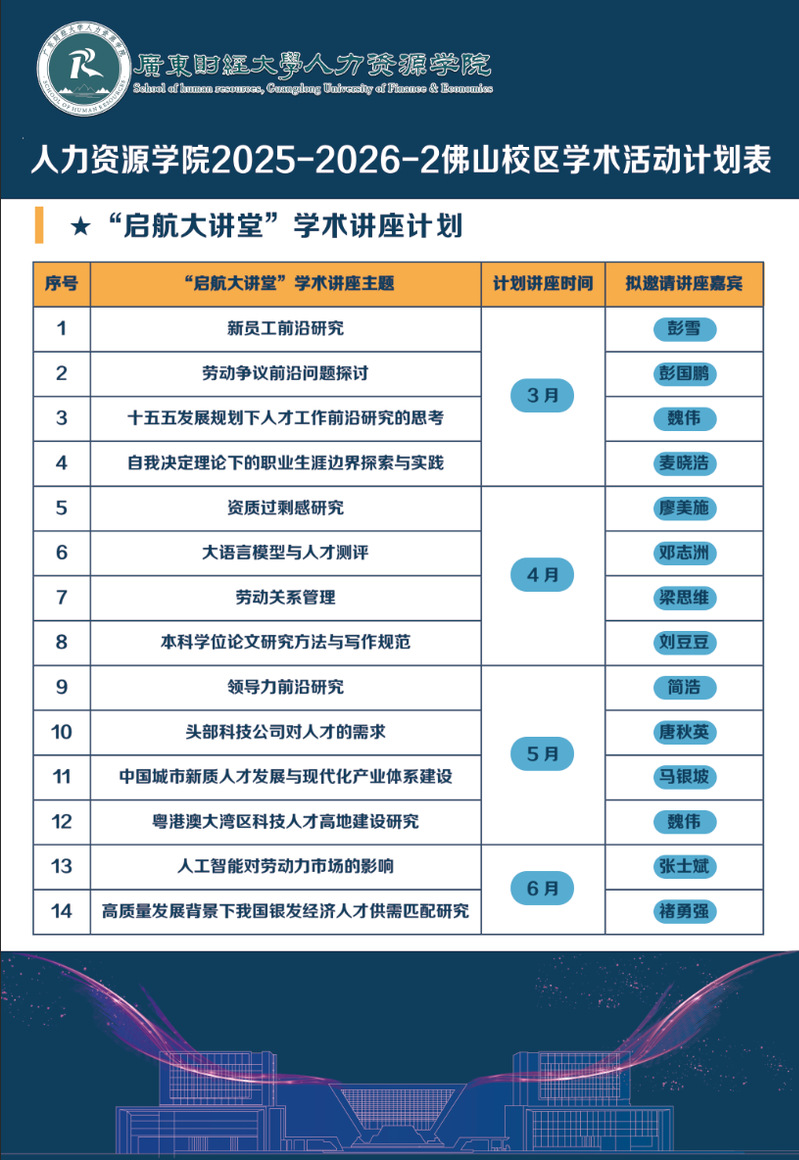 人力资源学院2025-2026-2佛山校区学术活动计划表